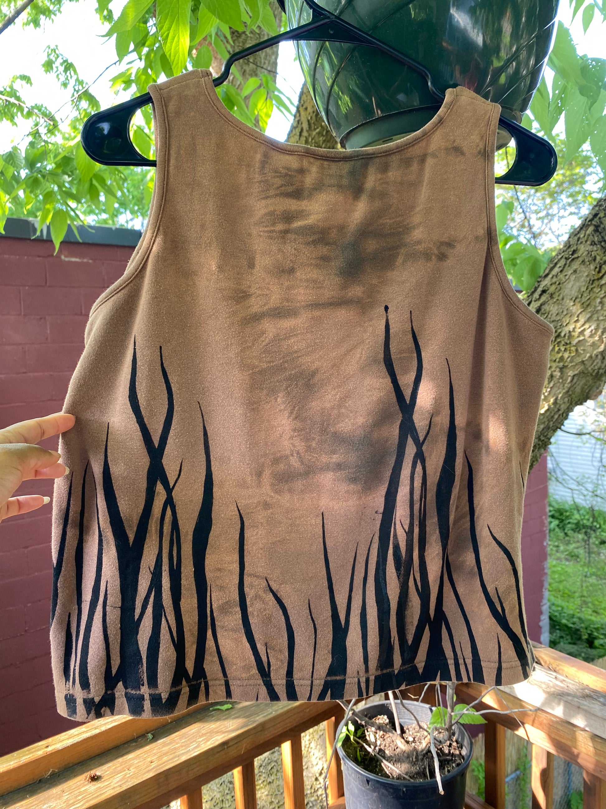 Screen printed upcycled tank top 100% Soft stretchy cotton.